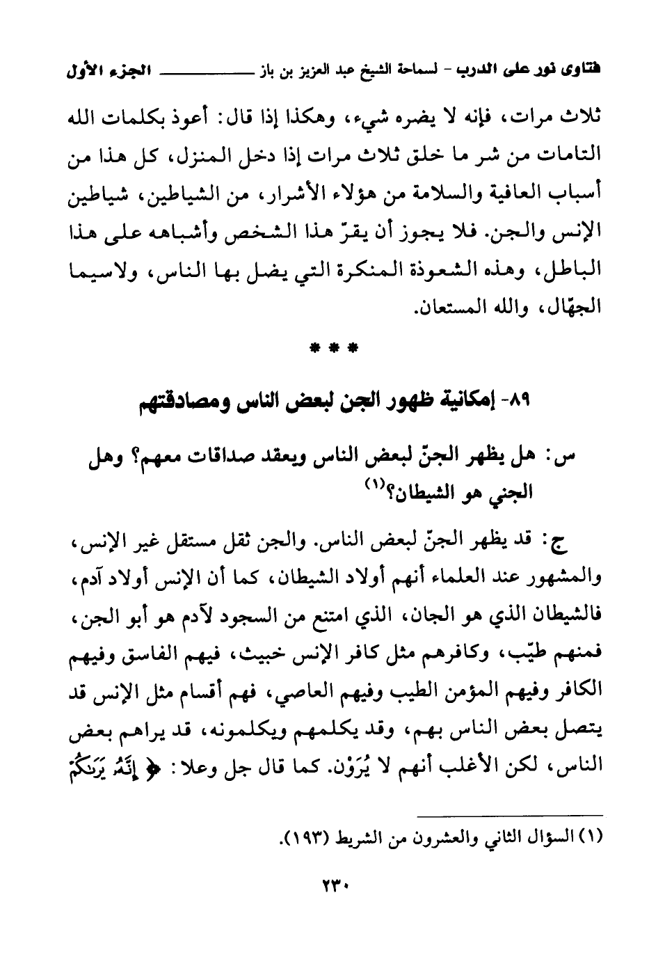 89 - إمكانية ظهور الجن لبعض الناس ومصادقتهم