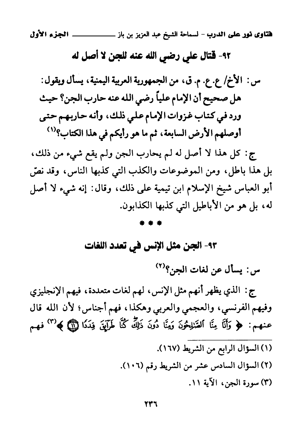 92 - قتال علي رضي الله عنه للجن لا أصل له
