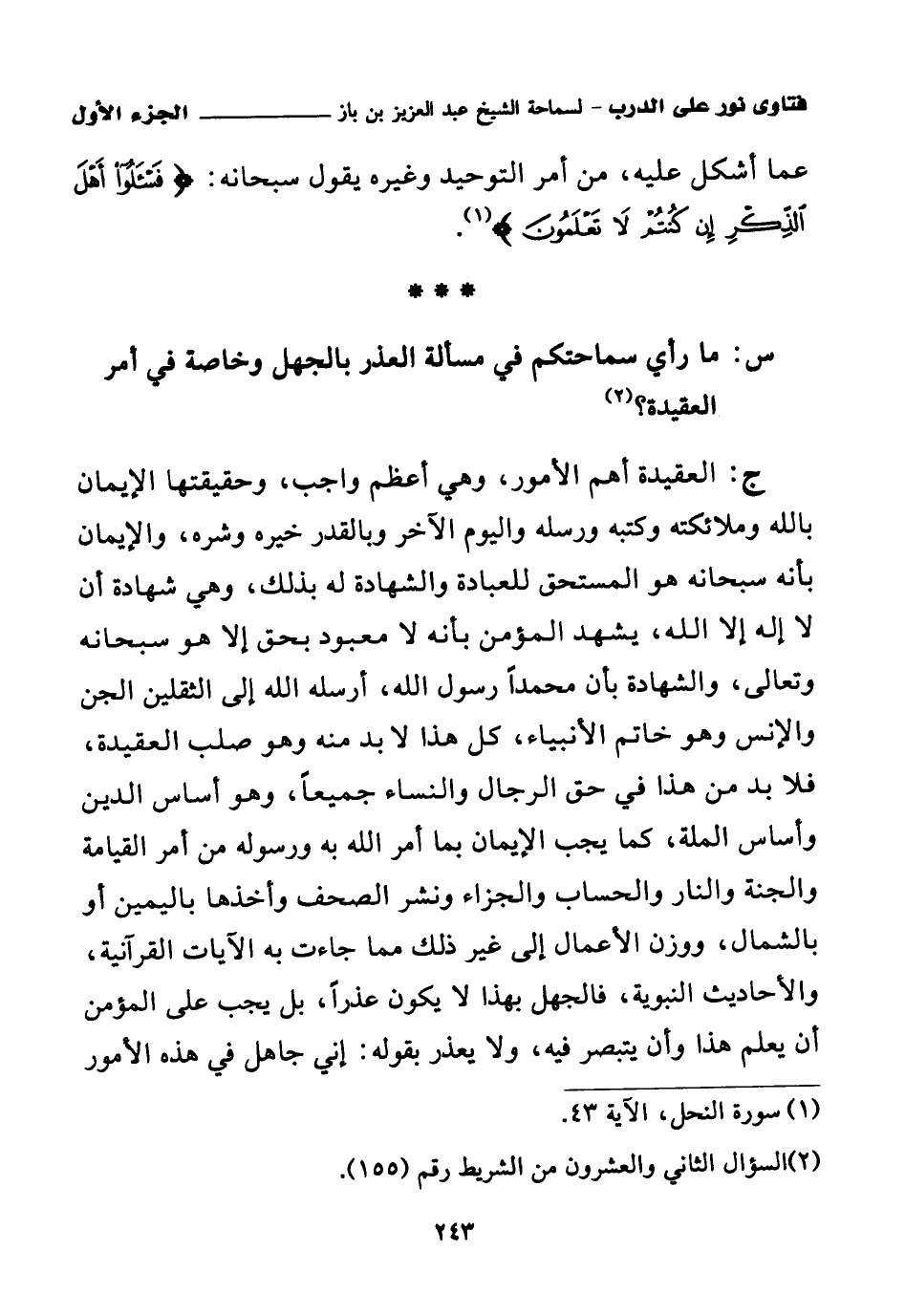 كتاب فتاوى نور على الدرب لابن باز بعناية الشويعر (اسم الجزء: 1)