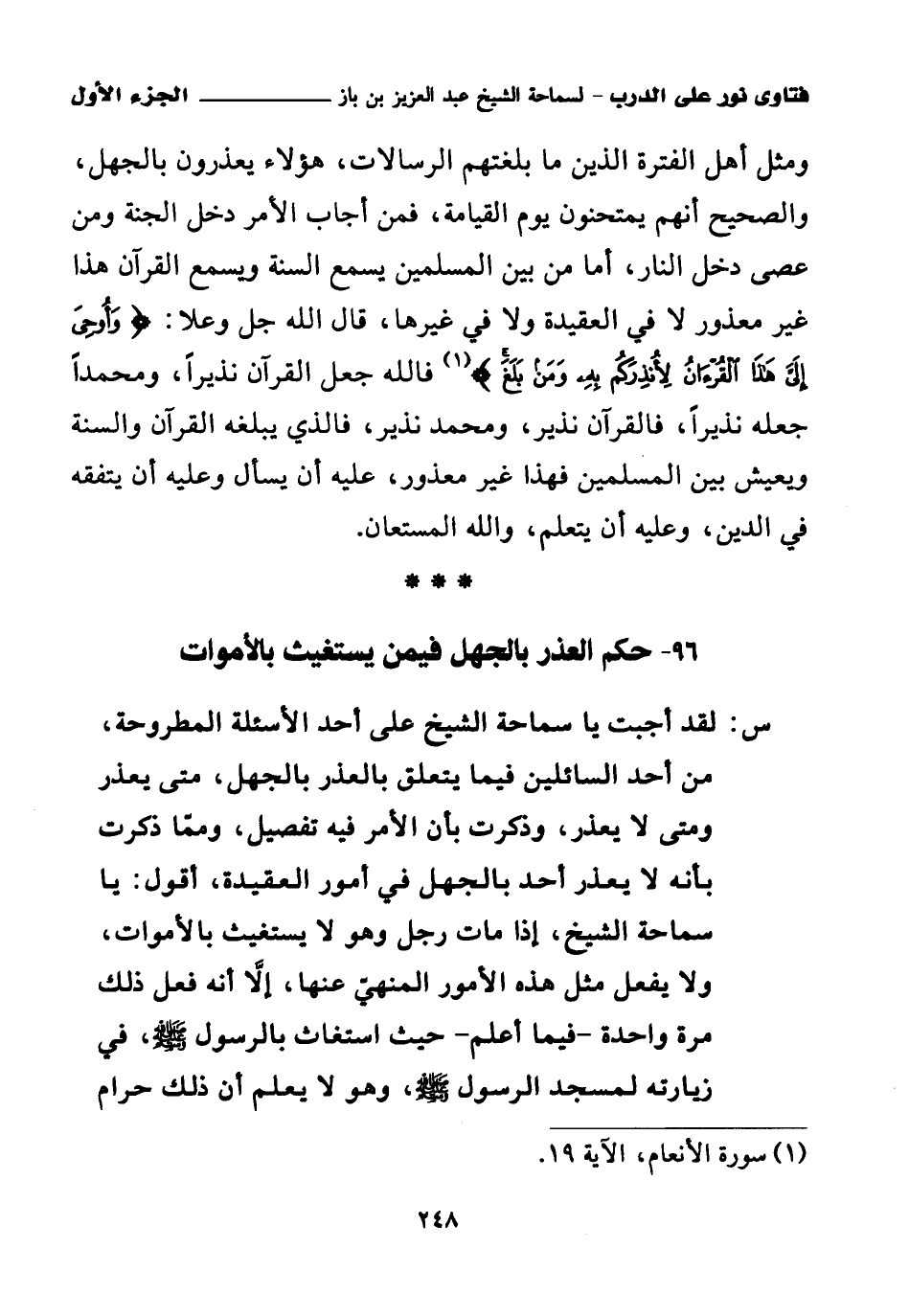 96 - حكم العذر بالجهل فيمن يستغيث بالأموات