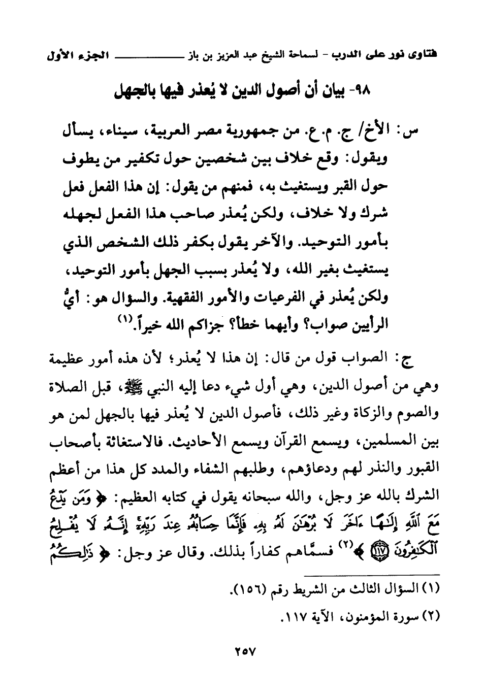 98 - بيان أن أصول الدين لا يعذر فيها بالجهل
