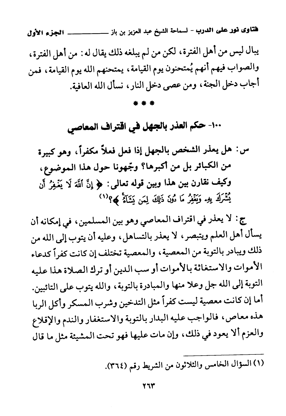 100 - حكم العذر بالجهل في اقتراف المعاصي