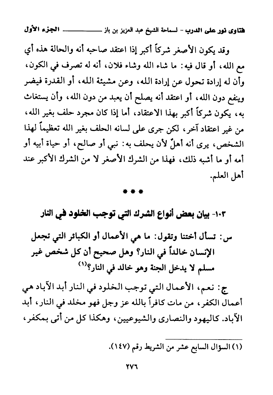 كتاب فتاوى نور على الدرب لابن باز بعناية الشويعر (اسم الجزء: 1)