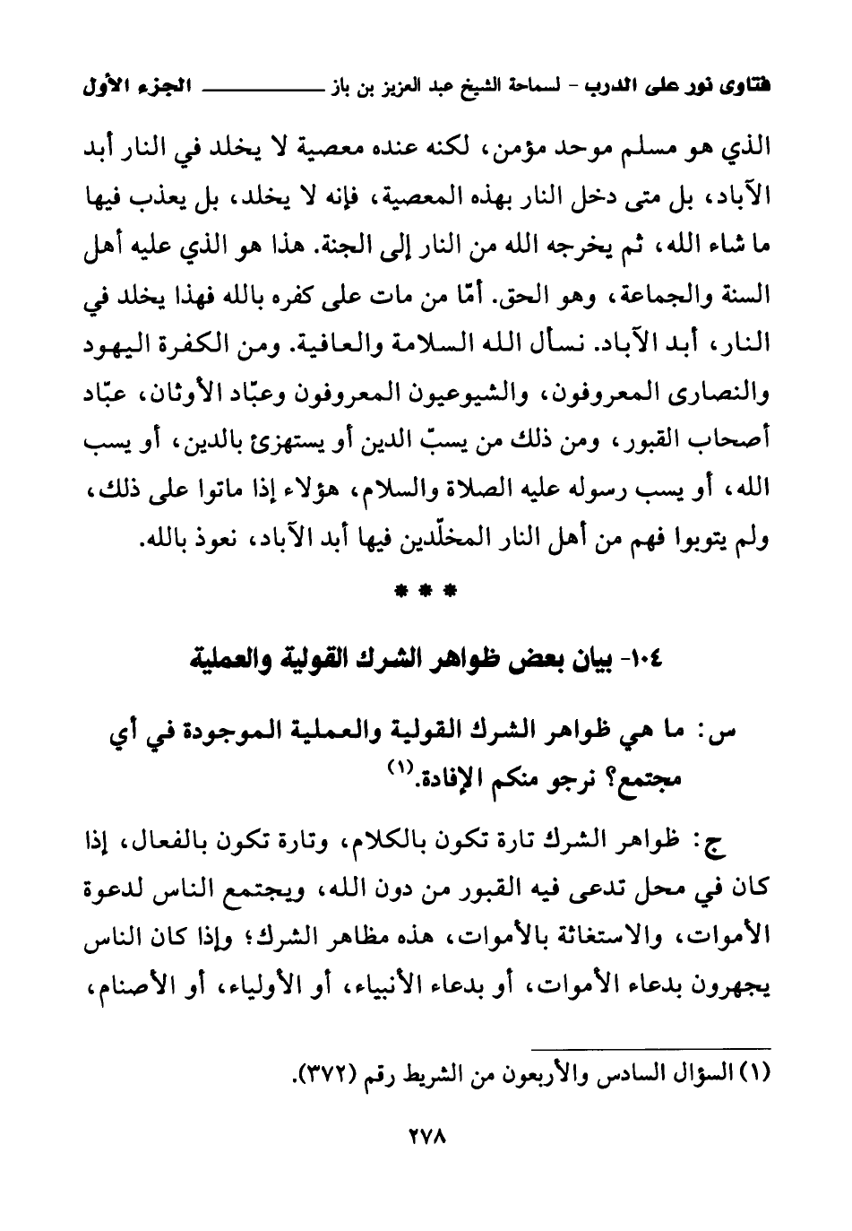 كتاب فتاوى نور على الدرب لابن باز بعناية الشويعر (اسم الجزء: 1)