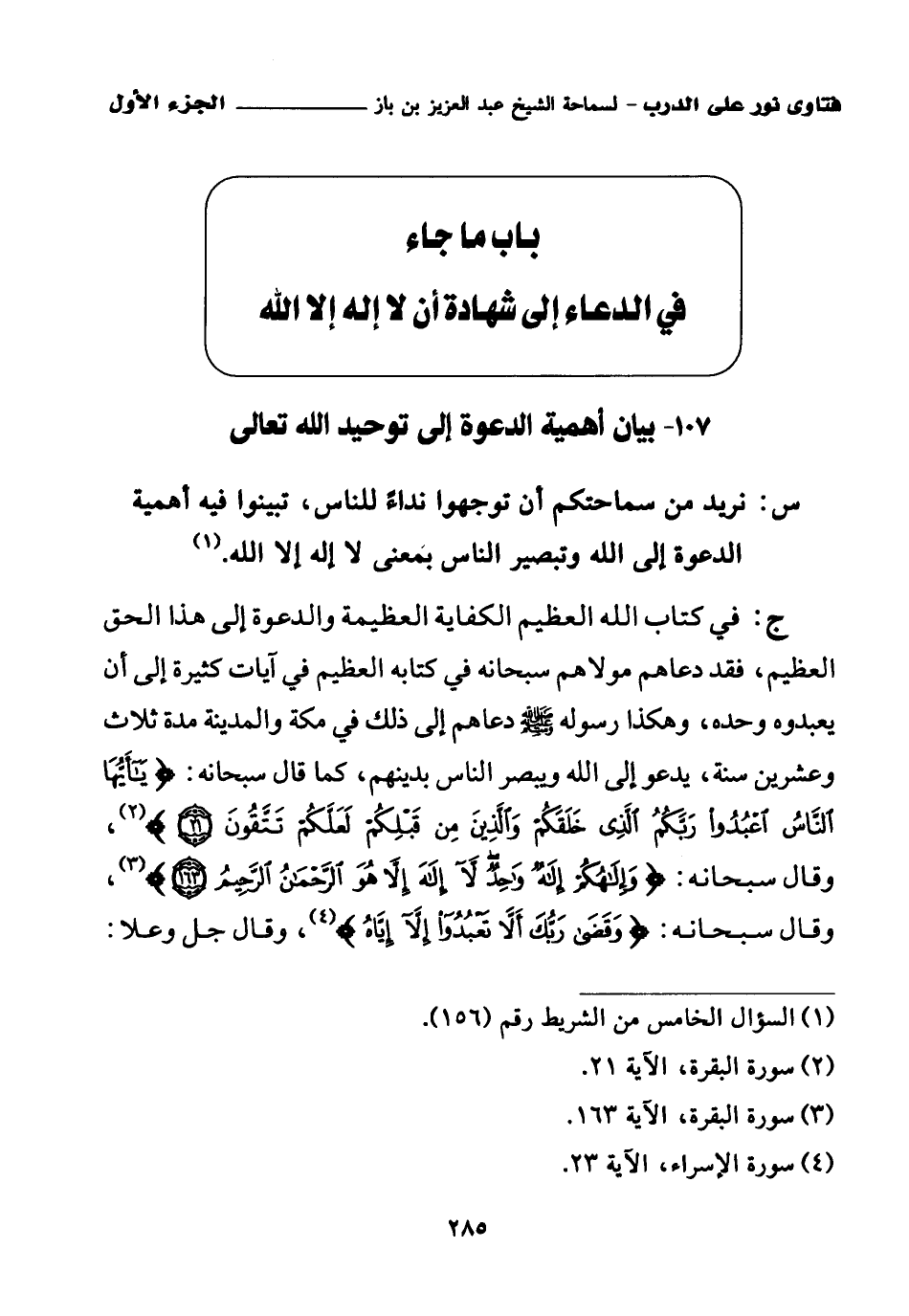 107 - بيان أهمية الدعوة إلى توحيد الله تعالى
