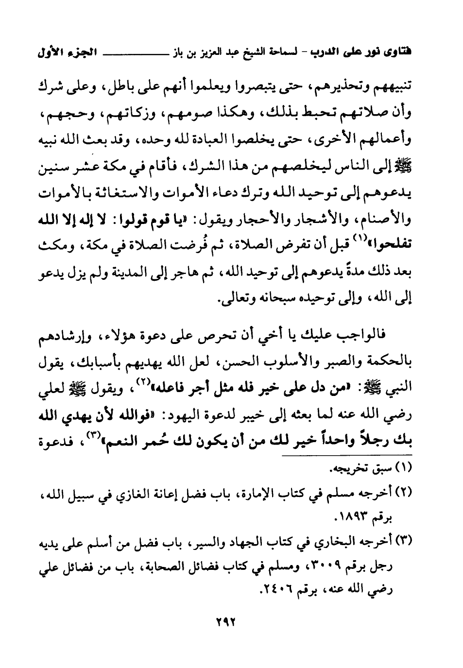 (¬3) أخرجه البخاري في كتاب الجهاد والسير، باب فضل من أسلم على يديه رجل برقم 3009، ومسلم في كتاب فضائل الصحابة، باب من فضائل علي رضي الله عنه، برقم 2406.