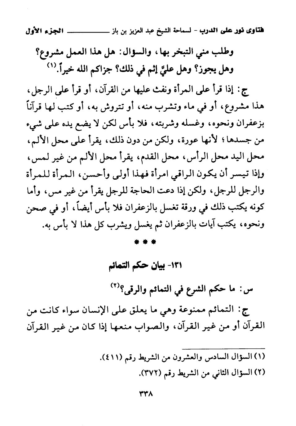 كتاب فتاوى نور على الدرب لابن باز بعناية الشويعر (اسم الجزء: 1)