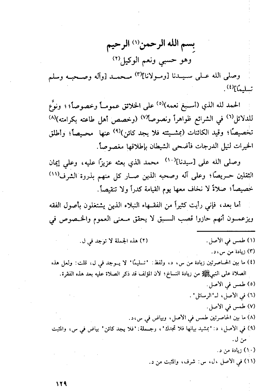 أما بعد, فإني رأيت كثيراً من الفقهاء النبلاء الذين يشتغلون بأصول الفقه ويزعمون أنهم حازوا قصب السبق لا يحقق معنى العموم والخصوص في