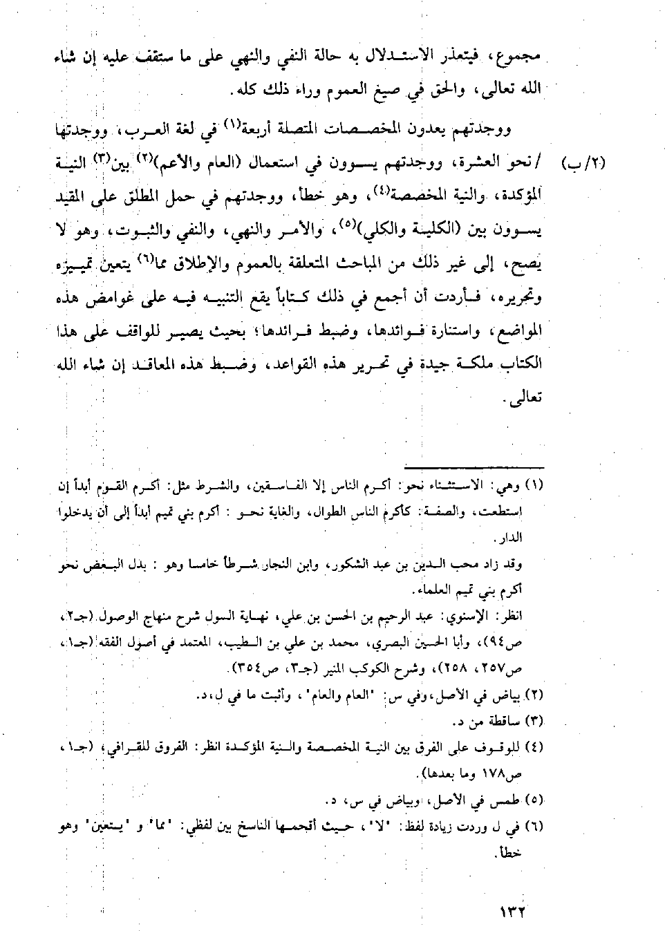 ووجدتهم يعدون المخصصات المتصلة أربعة في لغة العرب, ووجدتها نحو العشرة, ووجدتهم يسوون في استعمال العام والأعم بين النية المؤكدة, والنية المخصصة, وهو خطأ, ووجدتهم في حمل المطلق على المقيد يسوون بين الكلية والكلي, والأمر والنهي, والنفي والثبوت, وهو لا يصح, إلى غير ذلك من المباحث المتعلقة بالعموم والإطلاق مما يتعين تمييزه وتحريره, فأردت أن أجمع في ذلك كتاباً يقع التنبيه فيه على غوامض هذه المواضع, واستنارة فوائدها, وضبط فرائدها, بحيث يصير للواقف على هذا الكتاب ملكة جيدة في تحرير هذه القواعد, وضبط هذه المعاقد إن شاء الله تعالى.