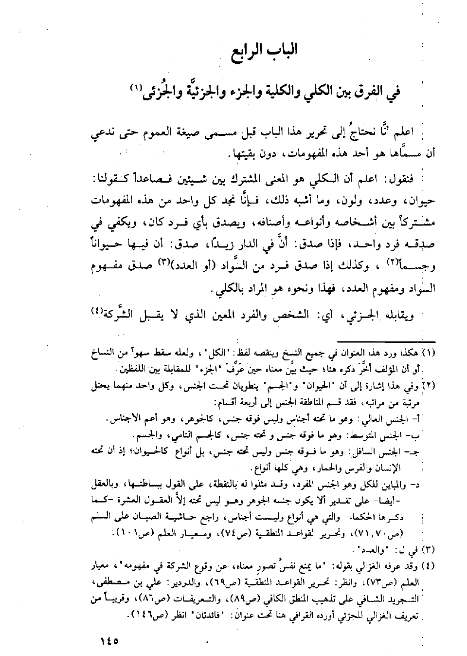 الباب الرابع في الفرق بين الكلي والكلية والجزء والجزئيَّة والجُزئى