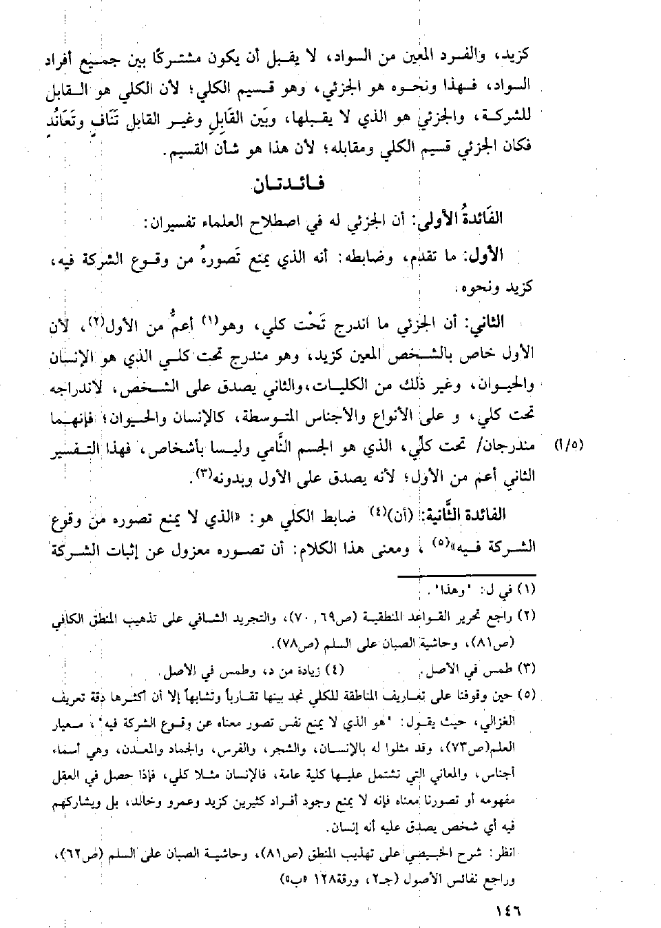 الفائدة الأولى: أن الجزئي له في اصطلاح العلماء تفسيران:
