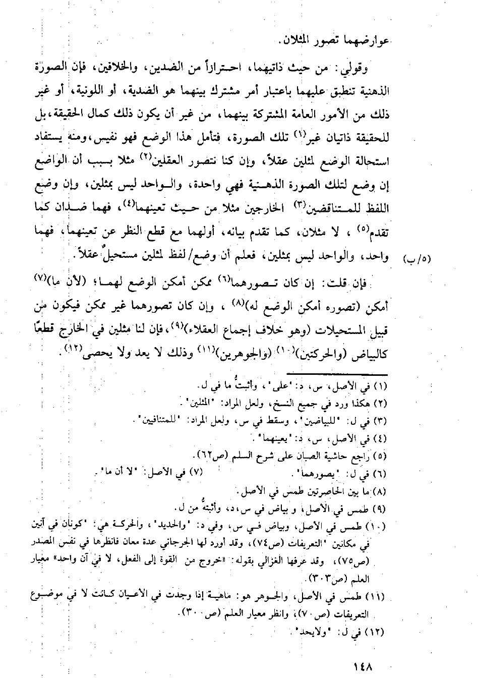 فإن قلت: إن كان تصورهما ممكن أمكن الوضع لهما, لأن ما أمكن تصوره أمكن الوضع له, وإن كان تصورهما غير ممكن فيكون من قبيل المستحيلات وهو خلاف إجماع العقلاء فإن لنا مثلين في الخارج قطعًا كالبياض والحركتين والجوهرين وذلك لا يعد ولا يحصى.