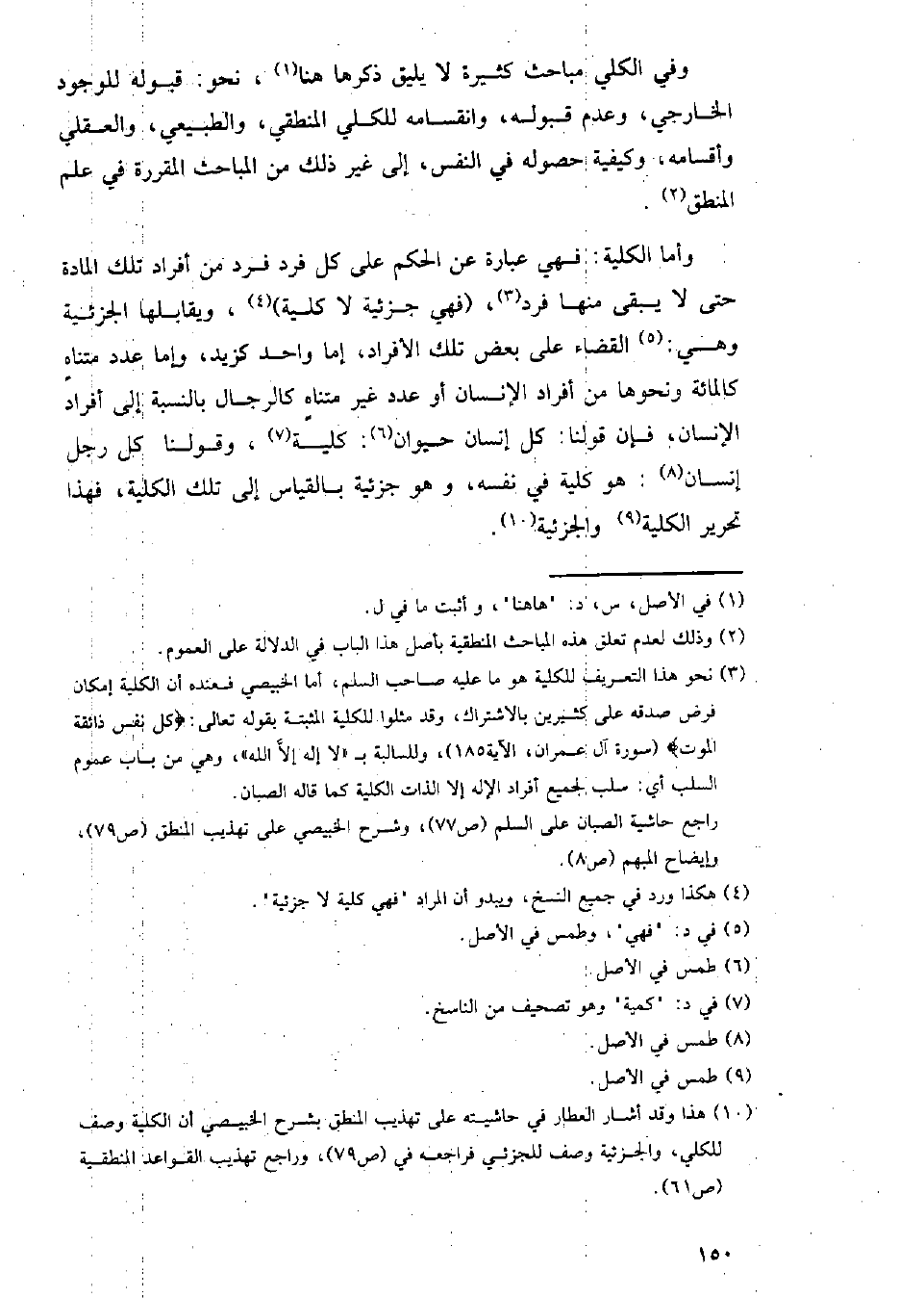 وفي الكلي مباحث كثيرة لا يليق ذكرها هنا, نحو: قبوله للوجود الخارجي, وعدم قبوله, وانقسامه للكلي المنطقي, والطبيعي, والعقلي وأقسامة, وكيفية حصولع في النفس, إلى غير ذلك من المباحث المقررة في علم المنطق.