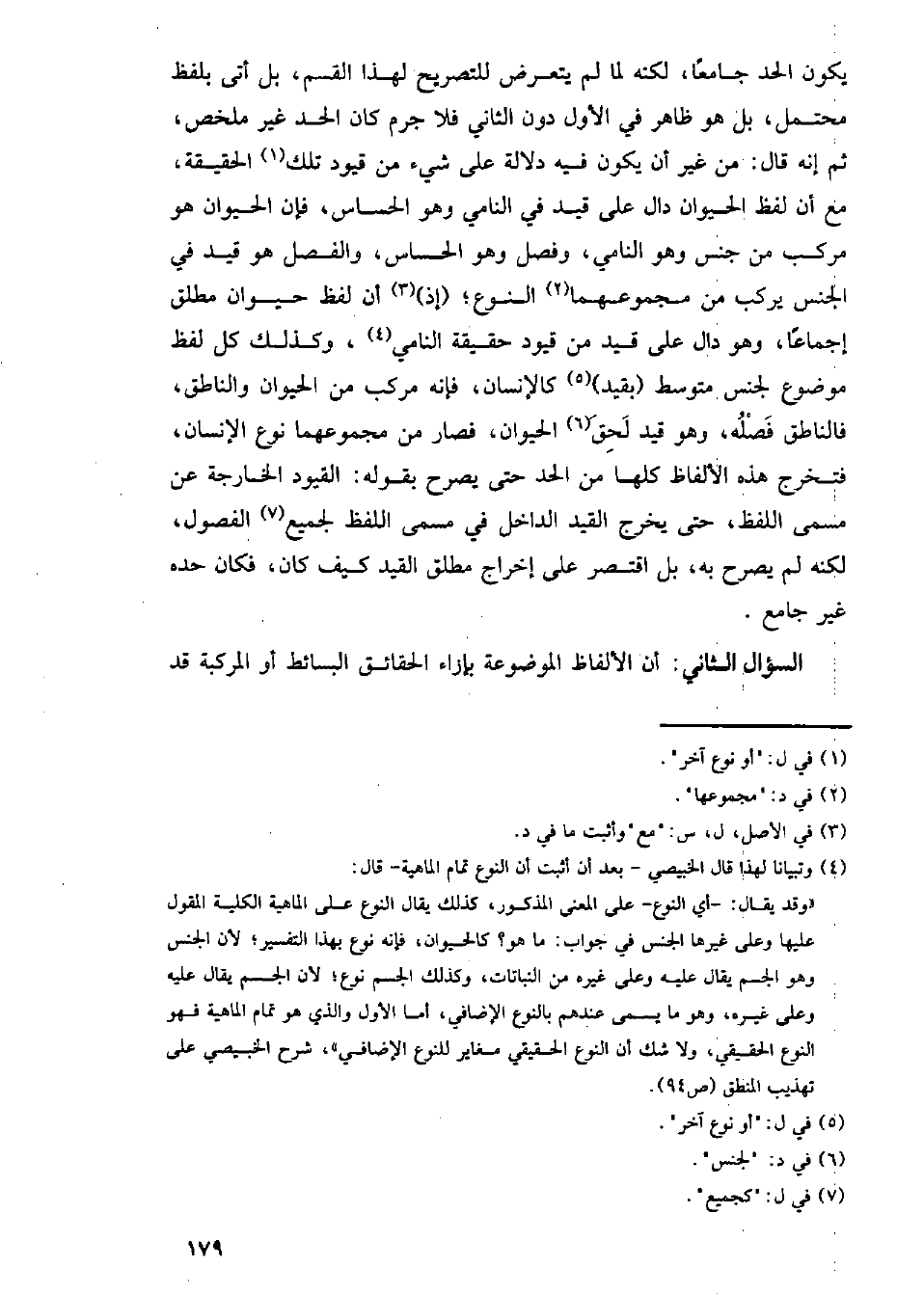 السؤال الثاني: أن الألفاظ الموضوعة بإزاء الحقائق البسائط أو المركبة قد