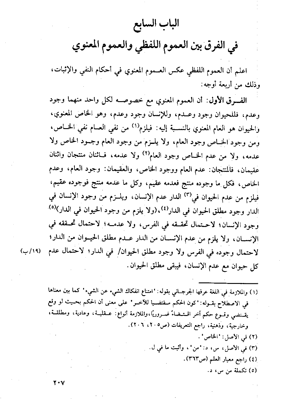 الباب السابع في الفرق بين العموم اللفظي والعموم المعنوي