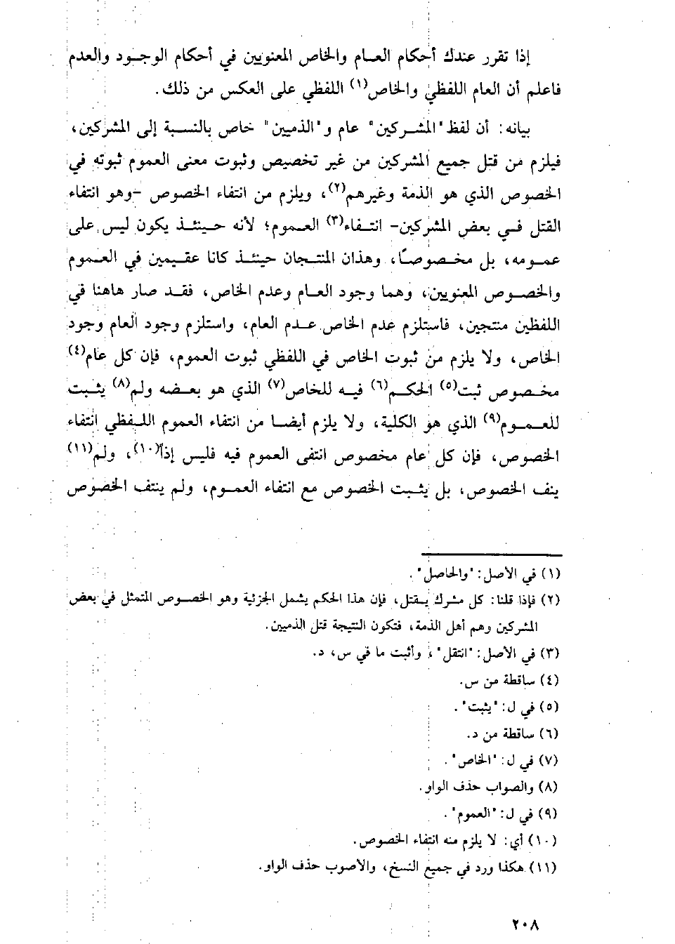 إذا تقرر عندك أحكام العام والخاص المعنويين في أحكام الوجود والعدم فاعلم أن العام اللفظي والخاص اللفظي على العكس من ذلك.