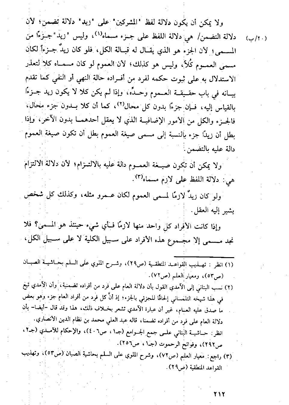 ولا يمكن أن يكون دلالة لفظ (المشركين) على (زيد) دلالة تضمن؛ لأن دلالة التضمن/ هي دلالة اللفظ على جزء مسماه، وليس (زيد) جزءا من المسمى؛ لأن الجزء هو الذي يقال له قبالة الكل، فلو كان زيد جزءا لكان مسمى العموم كلا، وليس هو كذلك؛ لأن العموم لو كان مسماه كلا لتعذر الاستدلال به على ثبوت حكمه فرد من أفراده حالة النهي أو النفي كما تقدم بياناته في باب حقيقة العموم وحده، وإذا لم يكن كلا لا يكون زيد جزءا بالقياس إليه، فإن جزءا بدون كل محال، كما أن كلا بدون جزء محال، فالجزء والكل من الأمور الإضافية الذي لا يعقل أحدهما بدون الآخر، وإذا بطل أن زيدا جزء بالنسبة إلى مسمى صيغة العموم يطل أن تكون صيغة العموم دالة عليه بالتضمن.