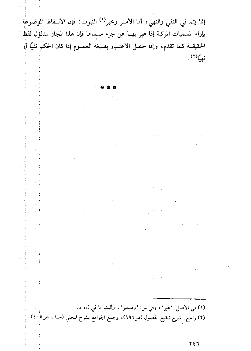 إنما يتم في النفي والنهي، أما الأمر وخبر الثبوت: فإن الألفاظ الموضوعة بإزاء المسميات المركبة إذا عبر بها عن جزء مسماها فإن هذا المجاز مدلول لفظ الحقيقة كما تقدم، وإنما حصل الاعتبار بصيغة العموم إذا كان الحكم نفيا أو نهيا.