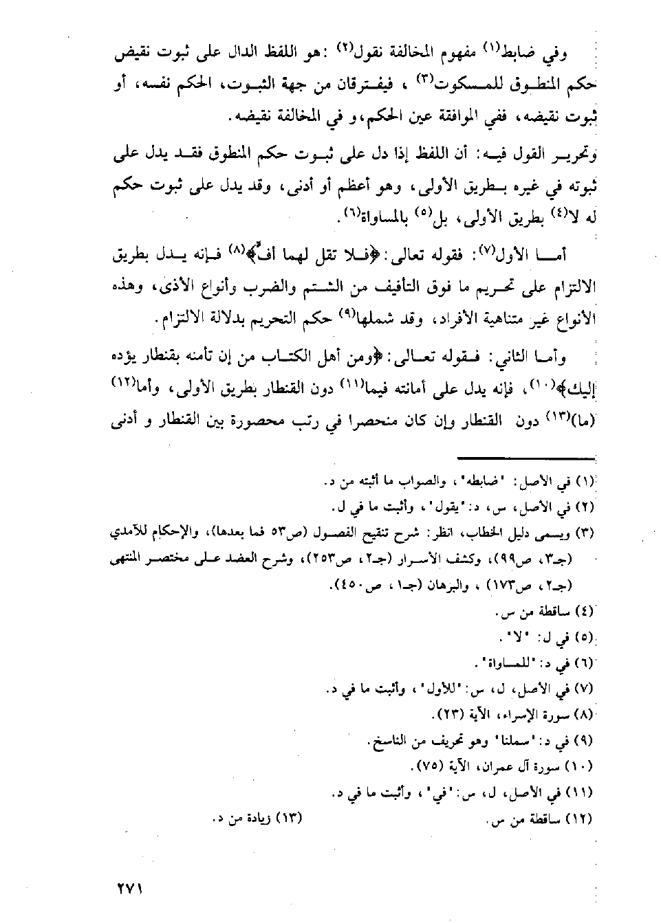 وأما الثاني: فقوله تعالى: {ومن أهل الكتاب من إن تأمنه بقنطار يؤده إليك}، فإنه يدل على أمانته فيما دون القنطار بطريق الأولى، وأما (ما) دون القنطار وإن كان منحصرا في رتب محصورة بين القنطار وأدنى