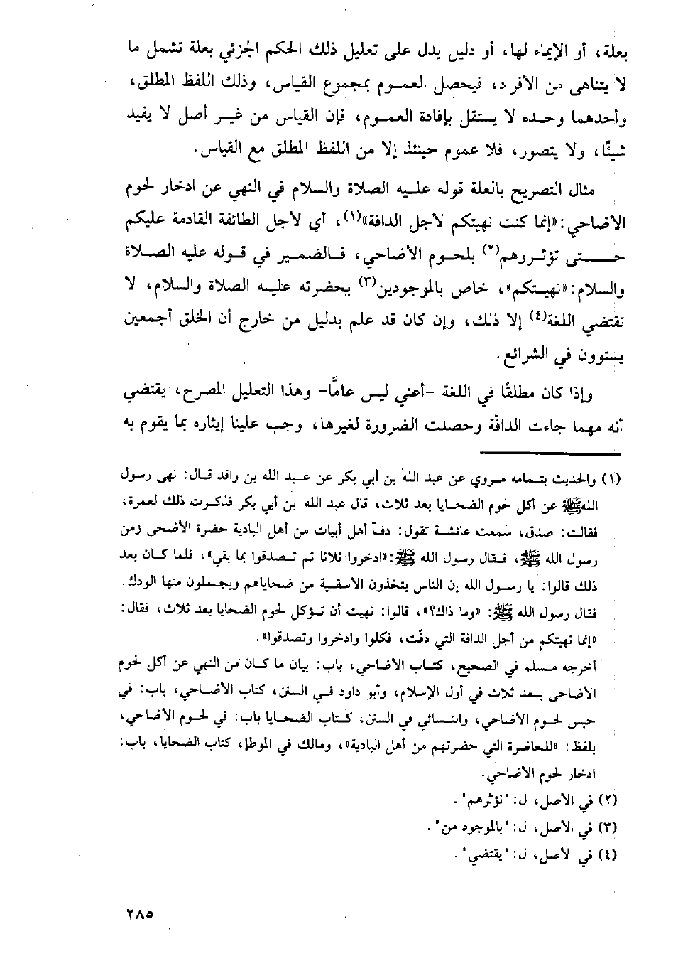 وإذا كان مطلقا في اللغة- أعني ليس عاما- وهذا التعليل المصرح، يقتضي أنه مهما جاءت الدافة وحصلت الضرورة لغيرها، وجب علينا إيثاره بما يقوم به