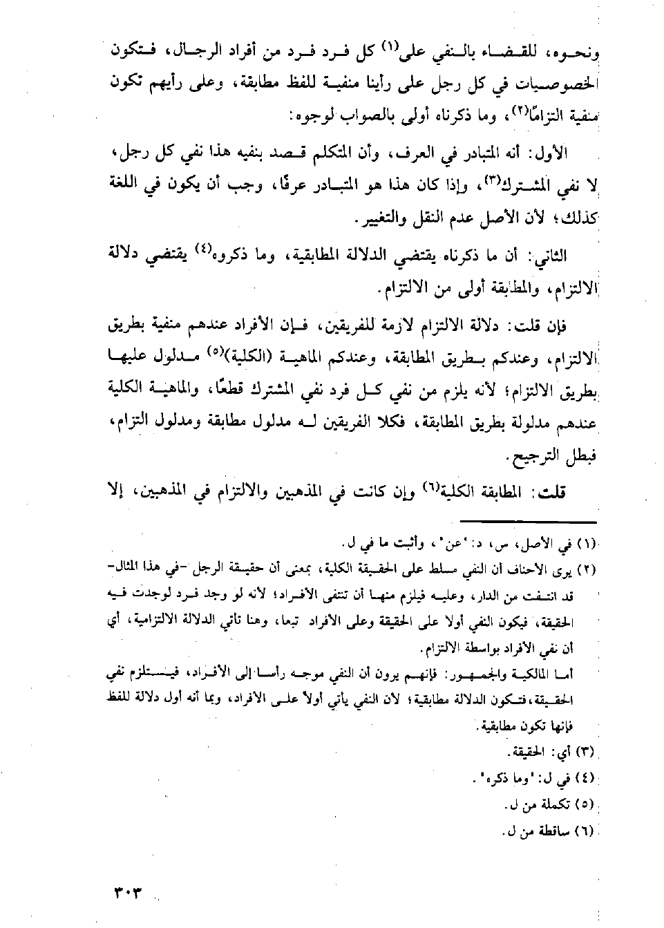 ونحوه، للقضاء بالنفي على فرد فرد من أفراد الرجال، فتكون الخصوصيات في كل رجل على رأينا منفية للفظ مطابقة، وعلى رأيهم تكون منفية التزاما، وما ذكرناه أولى بالصواب لوجوه: