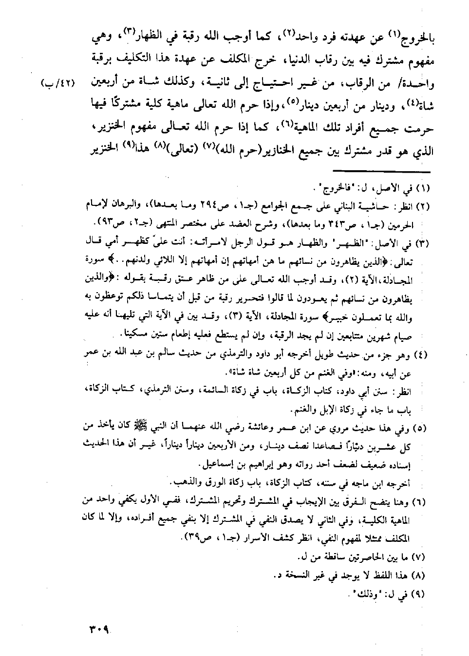 بالخروج عن عهدته فرد واحد، كما أوجب الله رقبة في الظهار، وهي مفهوم مشترك فيه بين رقاب الدنيا، خرج المكلف عن عهدة هذا التكليف برقبة واحدة/ من الرقاب، من غير احتياج إلى ثانية، وكذلك شاة من أربعين شاة، ودينار من أربعين دينار، وإذا حرم الله تعالى ماهية كلية مشتركا فيها حرمت جميع أفراد تلك الماهية، كما إذا حرم الله تعالى مفهوم الخنزير، الذي هو قدر مشترك بين جميع الخنازير (حرم الله) (تعالى) هذا الخنزير