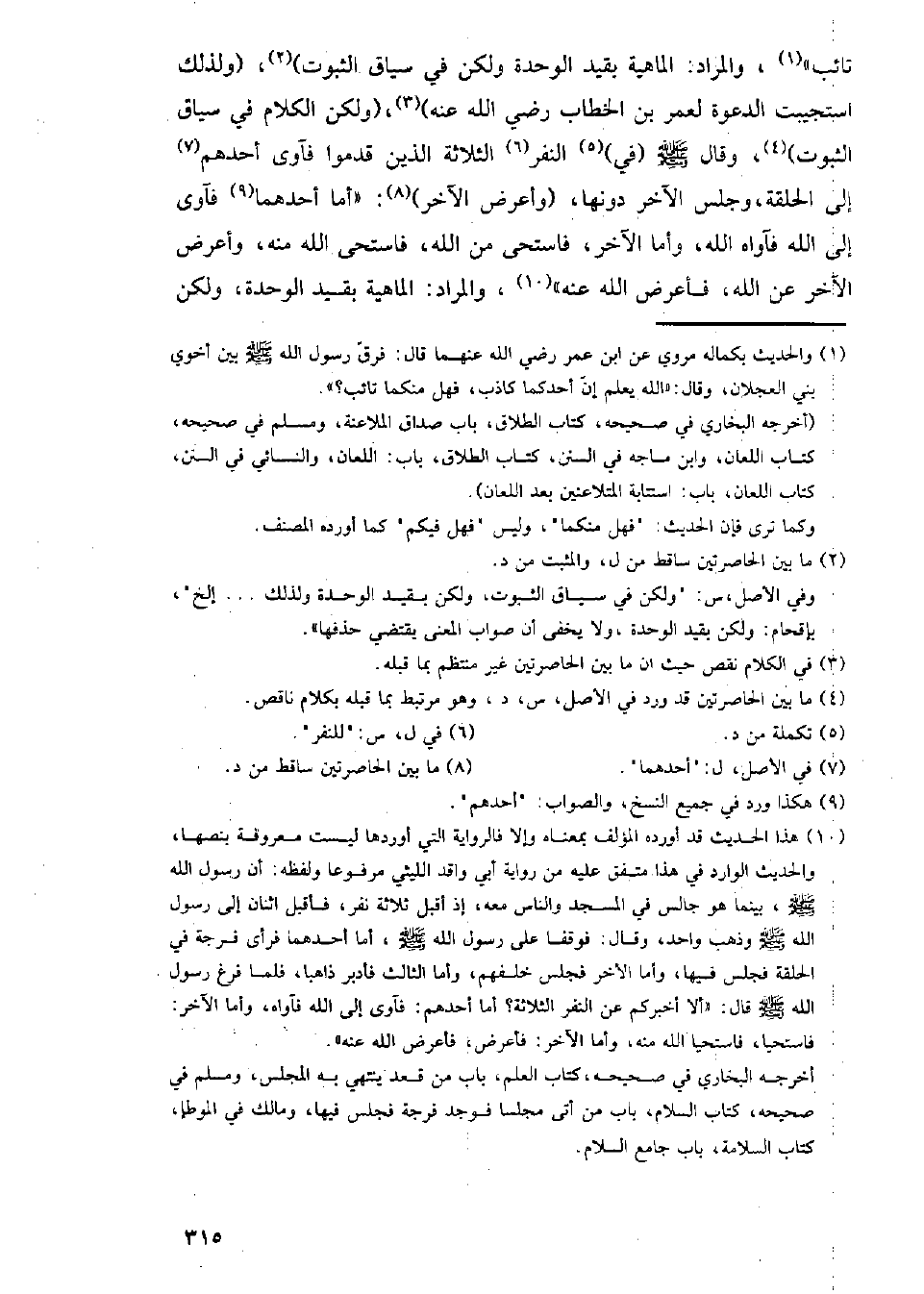 تائب)، والمراد: الماهية بقيد الوحدة ولكن في سياق الثبوت)، (ولذلك استجيبت الدعوة لعمر بن الخطاب رضي الله عنه)، ولكن الكلام في سياق الثبوت)، وقال - صلى الله عليه وسلم - (في) النفر الثلاثة الذين قدموا فآوى أحدهم إلى الحلقة، وجلس الآخر دونها، (وأعرض الآخر): (أما أحدهما فأوى إلى الله فآواه الله، وأما الآخر، فاستحى من الله، فاستحى الله منه، وأعرض الآخر عن الله، فأعرض الله عن)، والمراد: الماهية بقيد الوحدة، ولكن