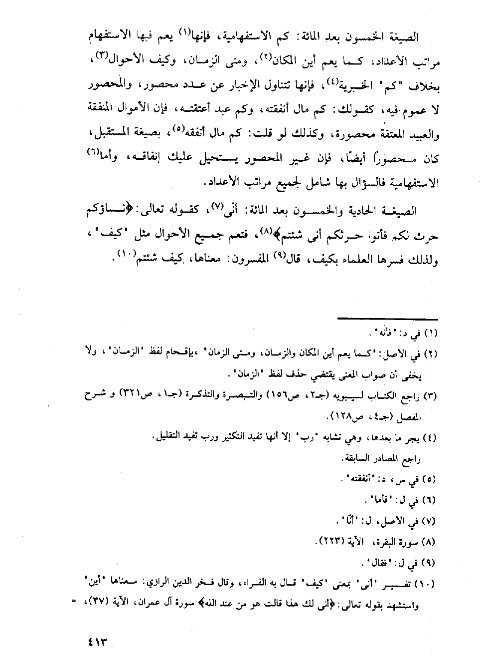 الصيغة الحادية والخمسون بعد المائة: أنى، كقوله تعالى: {نساؤكم حرث لكم فأتوا حرثكم أنى شئتم}، فتعم جميع الأحوال مثل (كيف)، ولذلك فسرها العلماء بكيف، قال المفسرون: معناها، كيف شئتم.