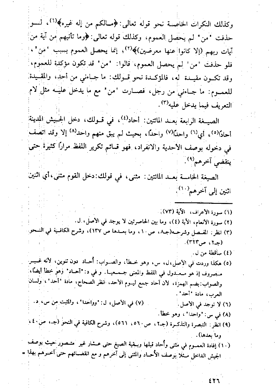 الصيغة الرابعة بعد المائتين: أحاد، في قولك، دخل الجيش المدينة أحادا، أي واحدا واحدا، بحيث لم يبق منهم واحد إلا وقد اتصف في دخوله بوصف الأحدية والانفراد، فهو قائم تكرير اللفظ مرارا كثيرة حتى ينقضي آخرهم.