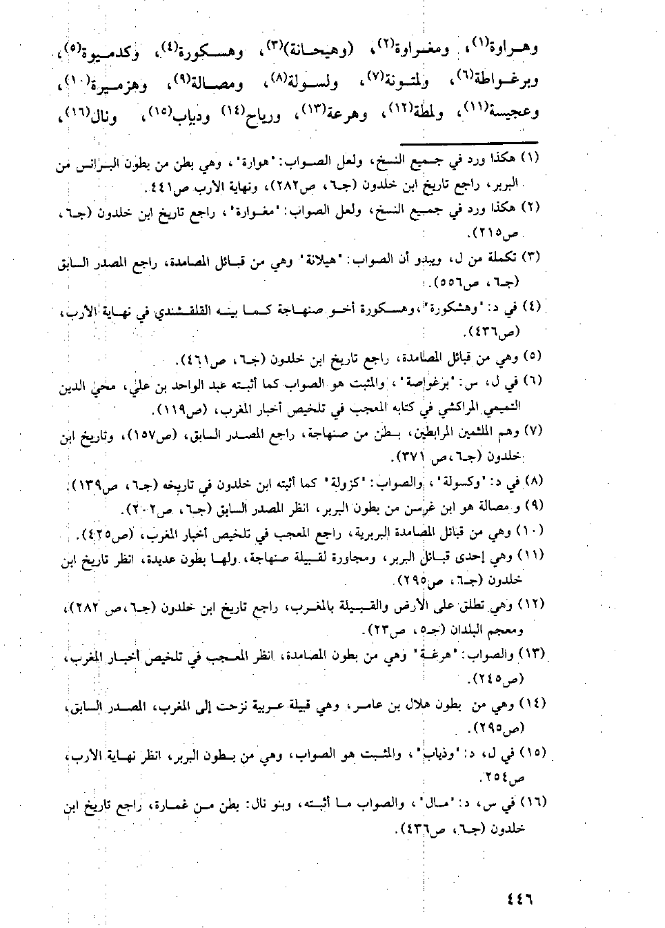 وهراوة، ومغراوة، (وهيحانة)، وهسكورة، وكدميوة، وبرغواطة، ولمتونة، ولسولة، ومصالة، وهزميرة، وعجيسة، ولمطة، وهرعة، ورياح، ودياب، ونال،