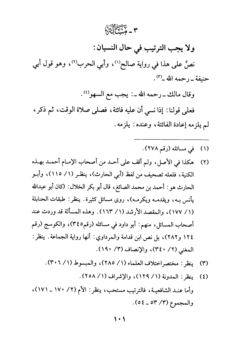 3 - مَسْألَة: ولا يجب الترتيب في حال النسيان: