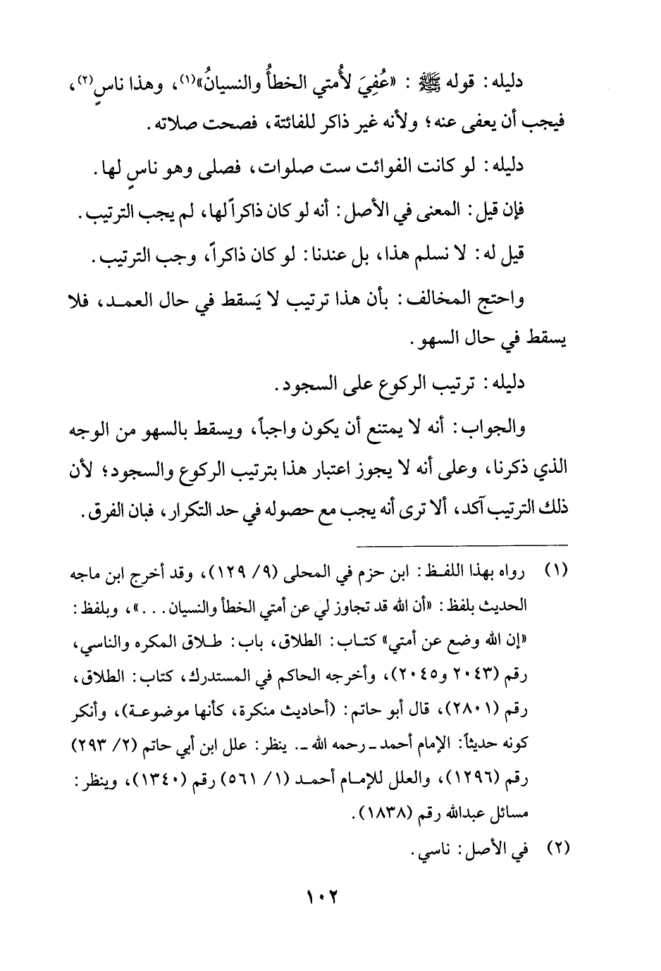 واحتج المخالف: بأن هذا ترتيب لا يَسقط في حال العمد، فلا يسقط في حال السهو.