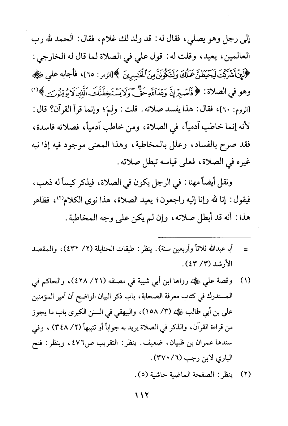 (¬1) وقصة علي - رضي الله عنه - رواها ابن أبي شيبة في مصنفه (21/ 428)، والحاكم في المستدرك في كتاب معرفة الصحابة، باب ذكر البيان الواضح أن أمير المؤمنين علي بن أبي طالب - رضي الله عنه - (3/ 158)، والبيهقي في السنن الكبرى باب ما يجوز من قراءة القرآن، والذكر في الصلاة يريد به جوابًا أو تنبيهًا (2/ 348)، وفي سندها عمران بن ظبيان، ضعيف. ينظر: التقريب ص 476، وينظر: فتح الباري لابن رجب (6/ 370).