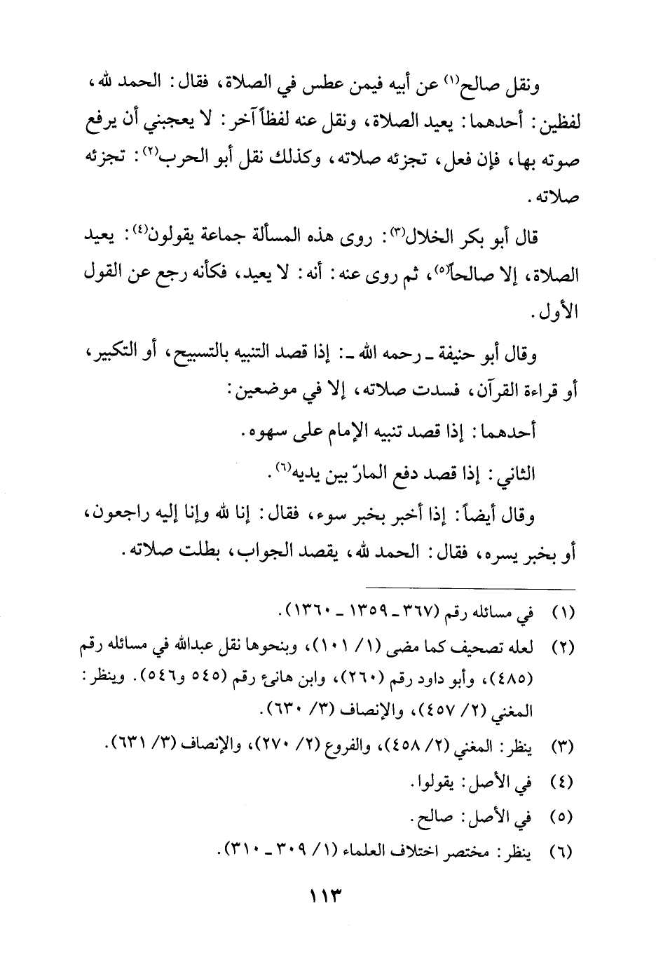 ونقل صالح (¬1) عن أبيه فيمن عطس في الصلاة، فقال: الحمد لله، لفظين: أحدهما: يعيد الصلاة، ونقل عنه لفظًا آخر: لا يعجبني أن يرفع صوته بها، فإن فعل، تجزئه صلاته، وكذلك نقل أبو الحرب (¬2): تجزئه صلاته.