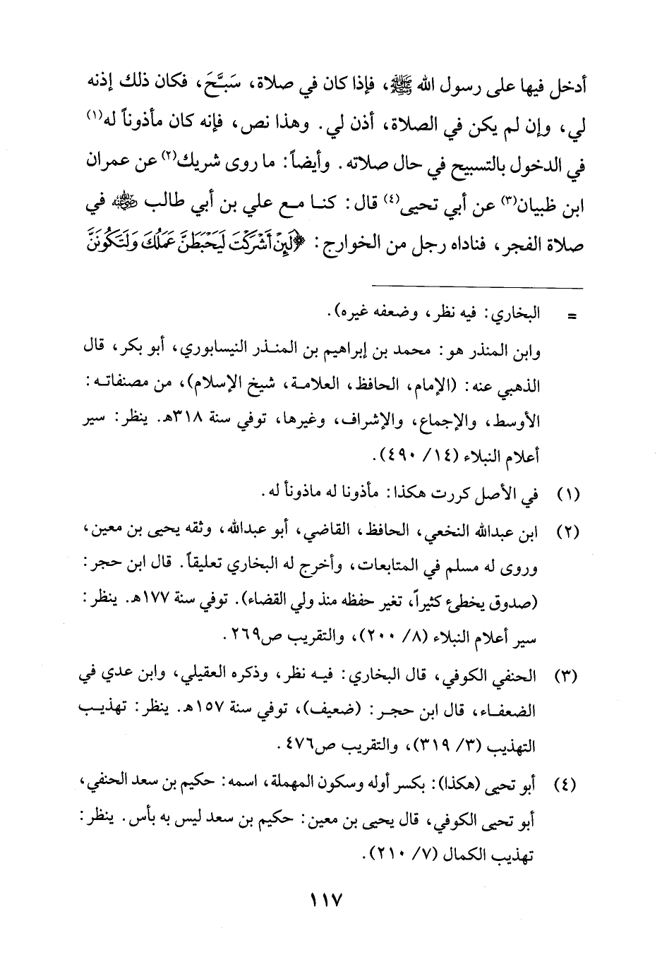 (¬4) أبو تحيى (هكذا): بكسر أوله وسكون المهملة، اسمه: حكيم بن سعد الحنفي، أبو تحيى الكوفي، قال يحيى بن معين: حكيم بن سعد ليس به بأس. ينظر: تهذيب الكمال (7/ 210).
