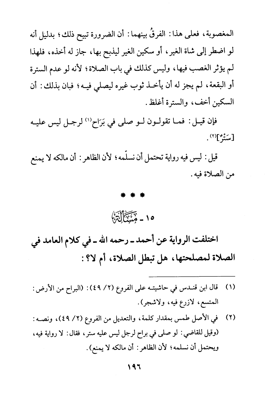 15 - مَسْألَة: اختلفت الرواية عن أحمد - رحمه الله - في كلام العامد في الصلاة لمصلحتها، هل تبطل الصلاة، أم لا؟ :