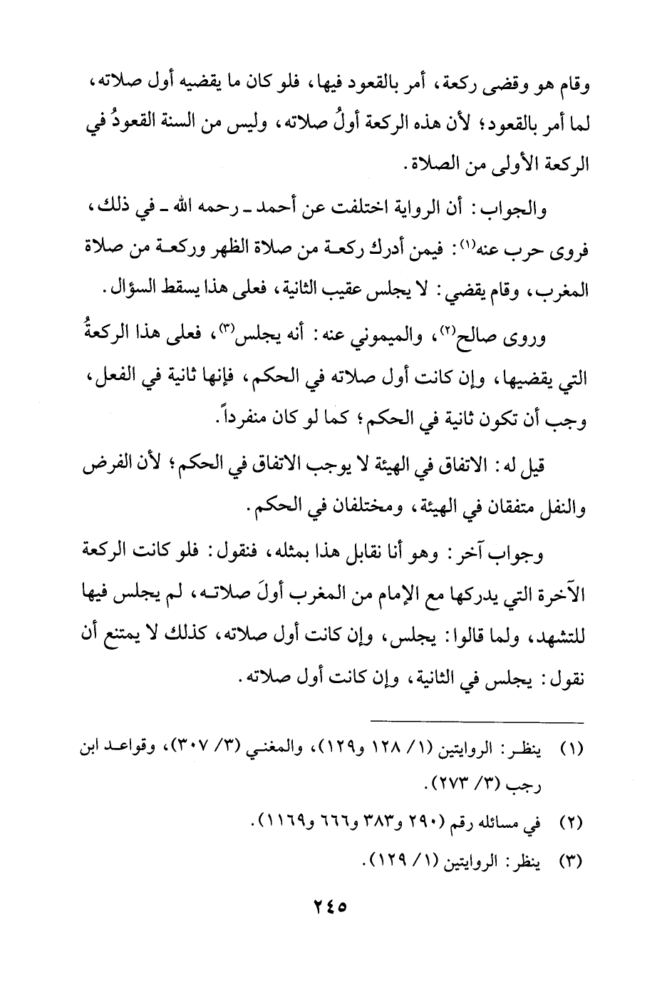 (¬1) ينظر: الروايتين (1/ 128 و 129)، والمغني (3/ 307)، وقواعد ابن رجب (3/ 273).