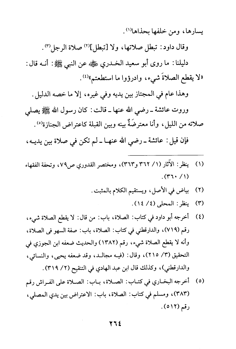 (¬4) أخرجه أبو داود في كتاب: الصلاة، باب: من قال: لا يقطع الصلاة شيء، رقم (719)، والدارقطني في كتاب: الصلاة، باب: صفة السهو فى الصلاة، وأنه لا يقطع الصلاة شيء، رقم (1382) والحديث ضعفه ابن الجوزي في التحقيق (3/ 215)، وقال: (فيه مجالد، وقد ضعفه يحيى، والنسائي، والدارقطني)، وكذلك قال ابن عبد الهادي في التنقيح (2/ 319).