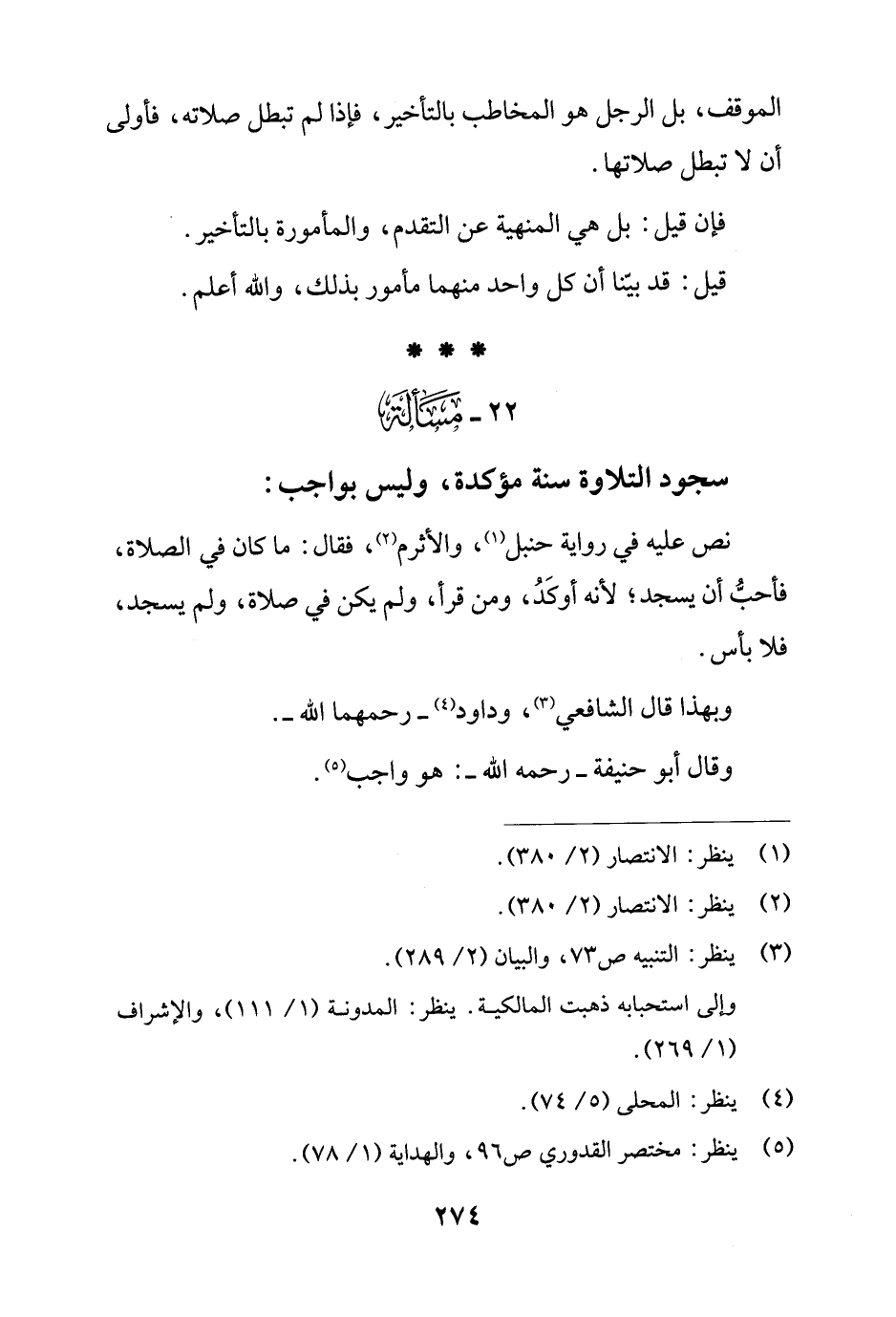 22 - مَسْألَة: سجود التلاوة سنة مؤكدة، وليس بواجب: