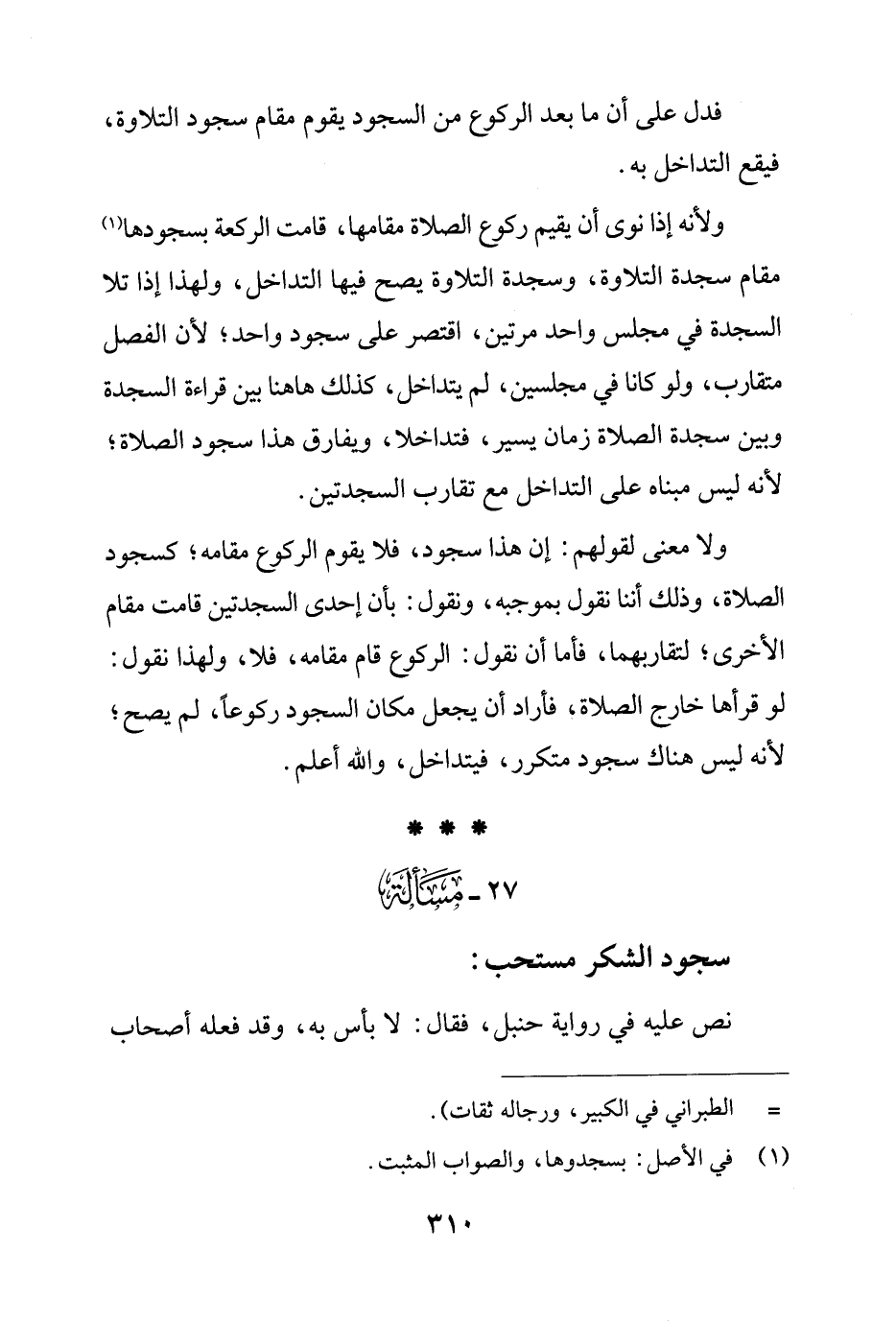 27 - مَسْألَة: سجود الشكر مستحب: