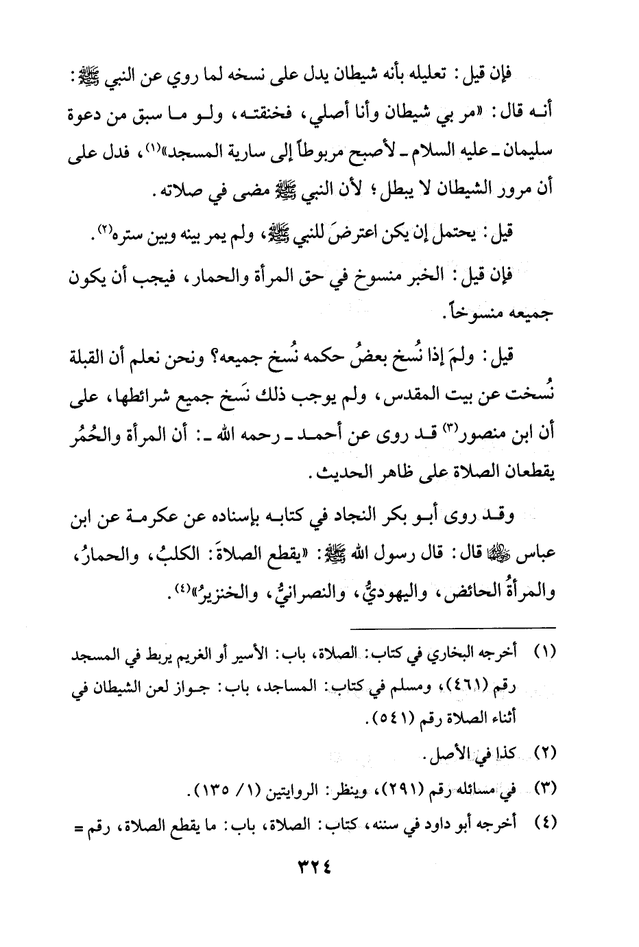 (¬4) أخرجه أبو داود في سننه، كتاب: الصلاة، باب: ما يقطع الصلاة، رقم =