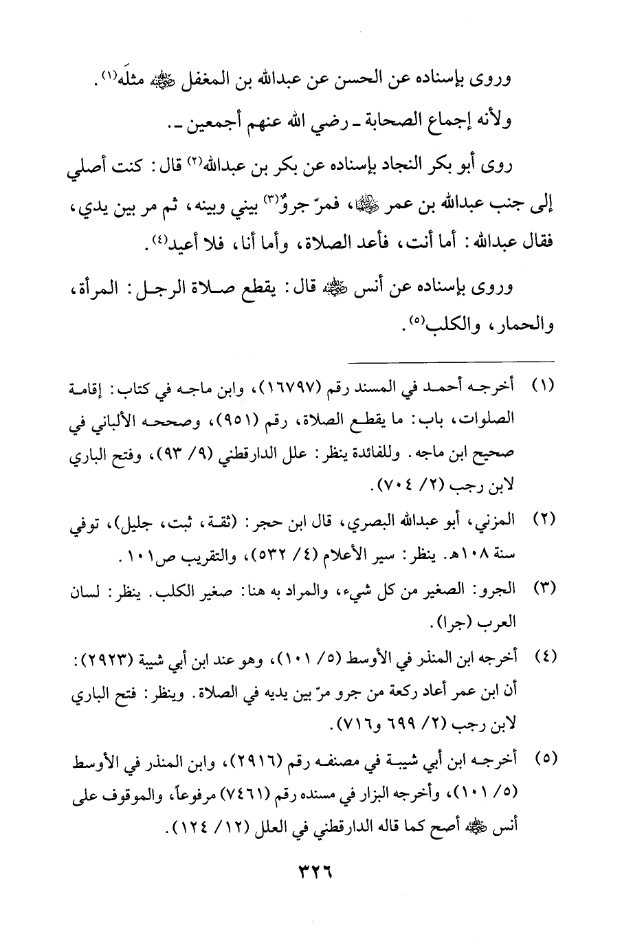 (¬4) أخرجه ابن المنذر في الأوسط (5/ 101)، وهو عند ابن أبي شيبة (2923): أن ابن عمر أعاد ركعة من جرو مرّ بين يديه في الصلاة. وينظر: فتح الباري لابن رجب (2/ 699 و 716).