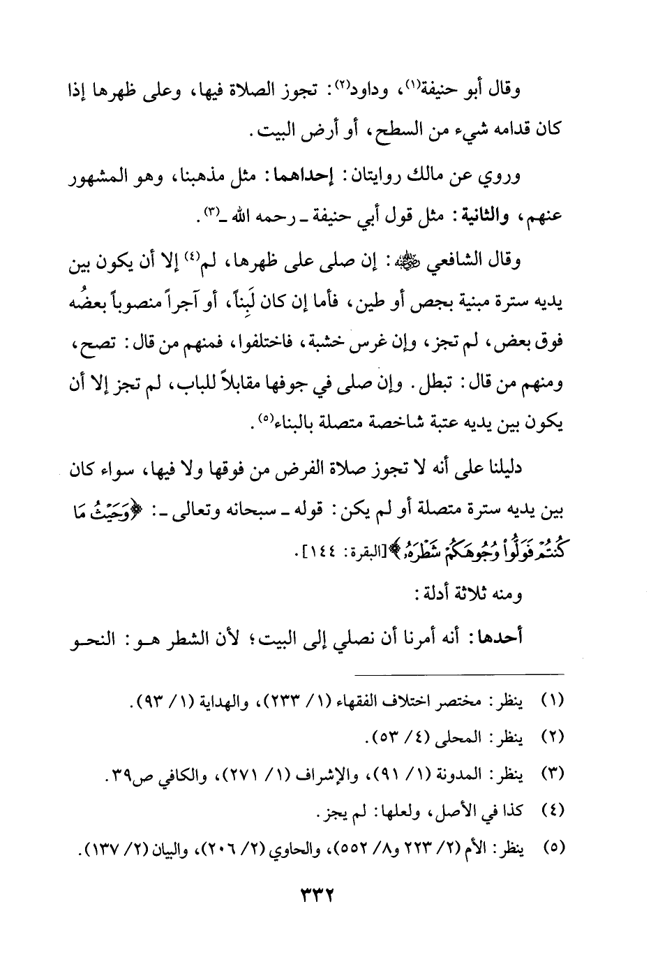 دليلنا على أنه لا تجوز صلاة الفرض من فوقها ولا فيها، سواء كان بين يديه سترة متصلة أو لم يكن: قوله - سبحانه وتعالى -: {وَحَيْثُ مَا كُنْتُمْ فَوَلُّوا وُجُوهَكُمْ شَطْرَهُ} [البقرة: 144].
