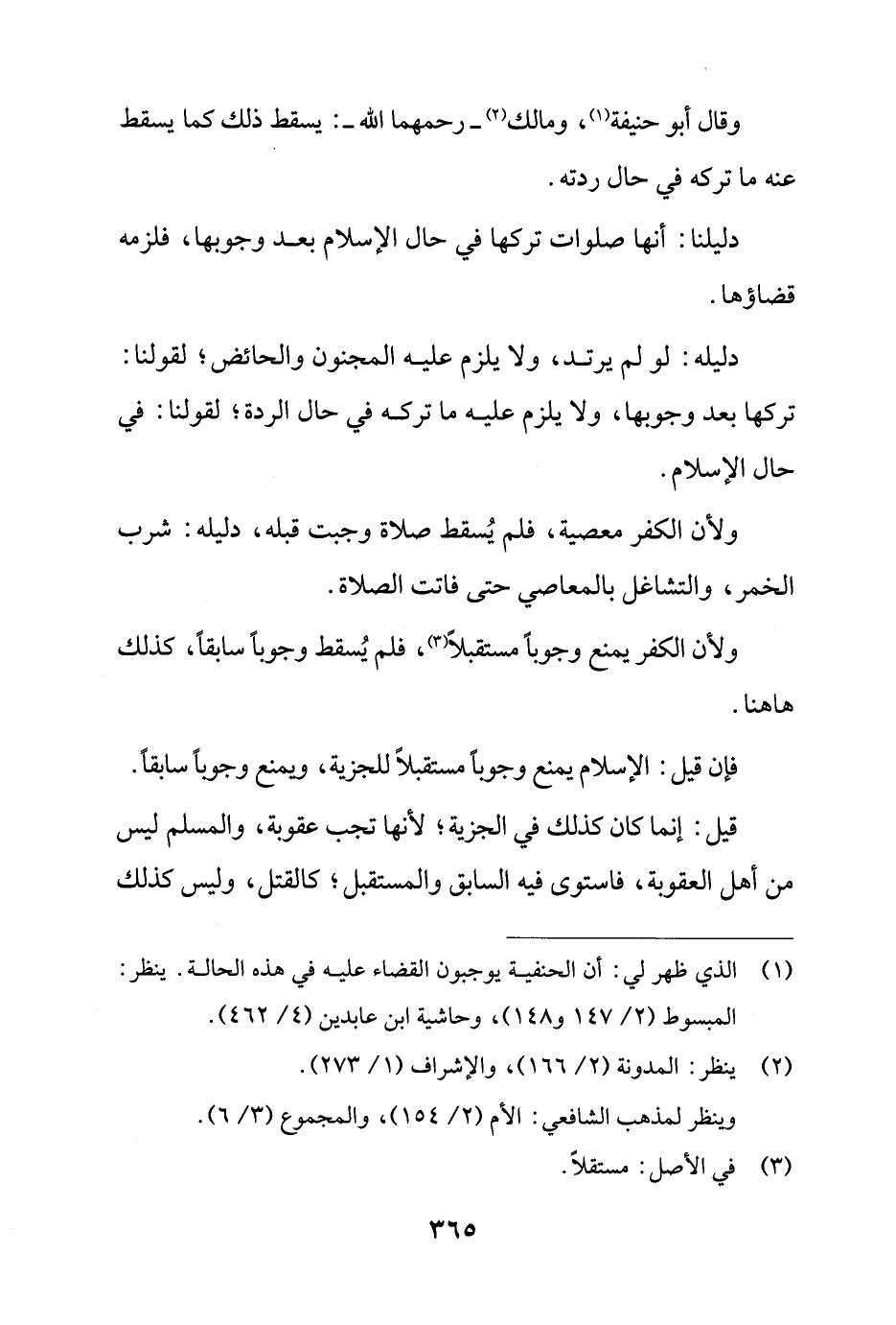 وقال أبو حنيفة (¬1)، ومالك (¬2) - رحمهما الله -: يسقط ذلك كما يسقط عنه ما تركه في حال ردته.