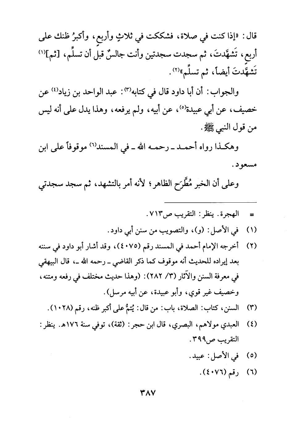 (¬3) السنن، كتاب: الصلاة، باب: من قال: يُتمُّ على أكبر ظنه، رقم (1028).
