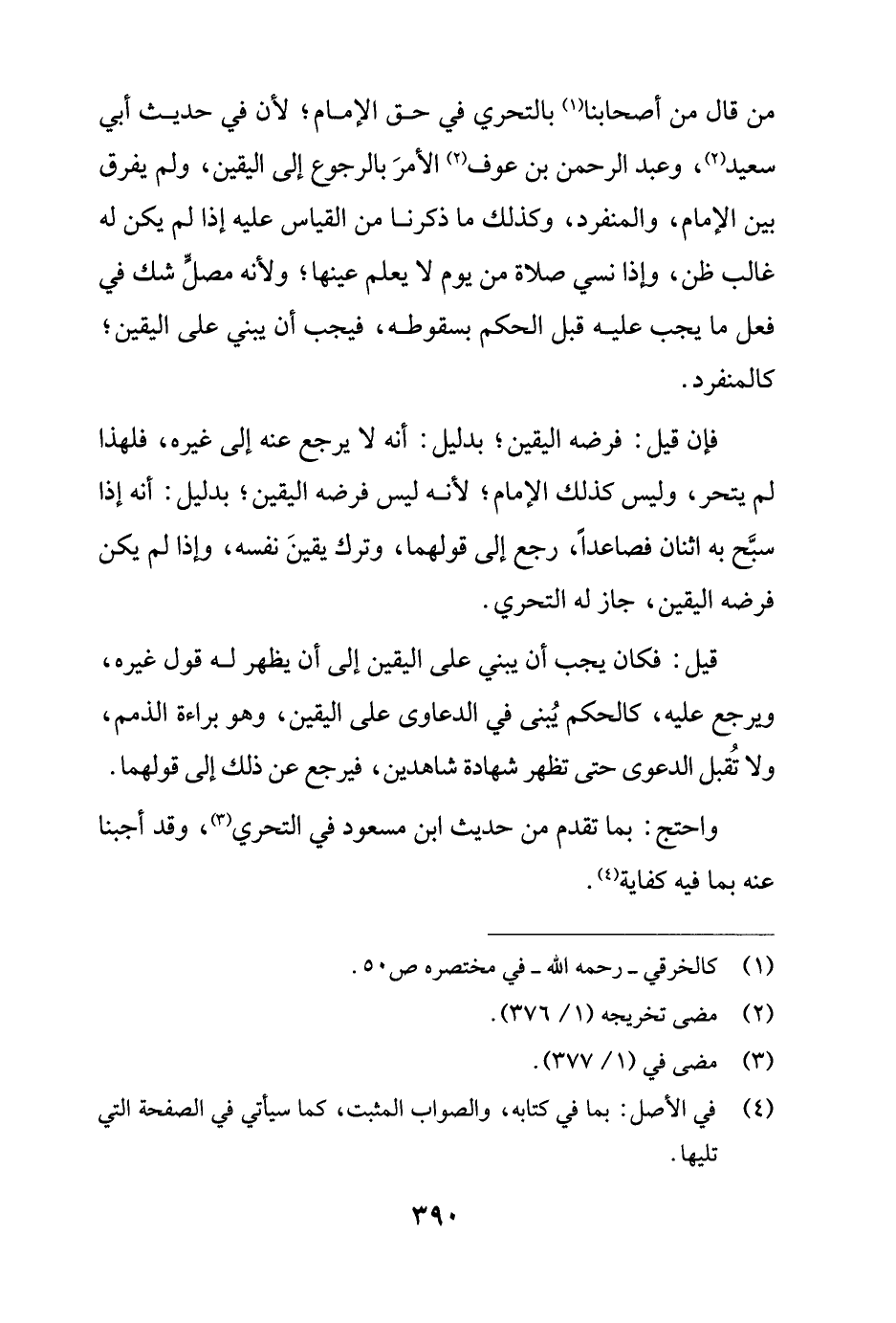 واحتج: بما تقدم من حديث ابن مسعود في التحري (¬3)، وقد أجبنا عنه بما فيه كفاية (¬4).