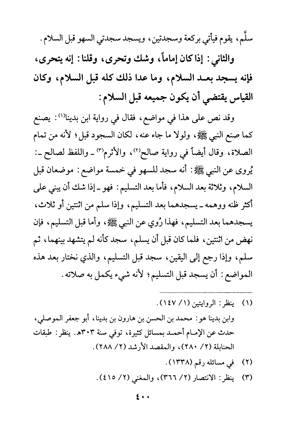 وابن بدينا هو: محمد بن الحسن بن هارون بن بدينا، أبو جعفر الموصلي، حدث عن الإمام أحمد بمسائل كثيرة، توفي سنة 303 هـ. ينظر: طبقات الحنابلة (2/ 280)، والمقصد الأرشد (2/ 288).