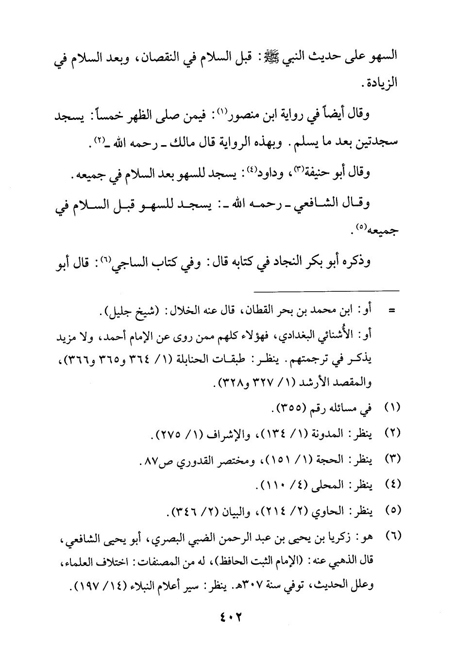 (¬6) هو: زكريا بن يحيى بن عبد الرحمن الضبي البصري، أبو يحيى الشافعي، قال الذهبي عنه: (الإمام الثبت الحافظ)، له من المصنفات: اختلاف العلماء، وعلل الحديث، توفي سنة 307 هـ. ينظر: سير أعلام النبلاء (14/ 197).