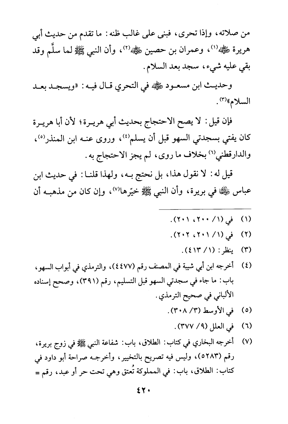 (¬4) أخرجه ابن أبي شيبة في المصنف رقم (4477)، والترمذي في أبواب السهو، باب: ما جاء في سجدتي السهو قبل التسليم، رقم (391)، وصحح إسناده الألباني في صحيح الترمذي.