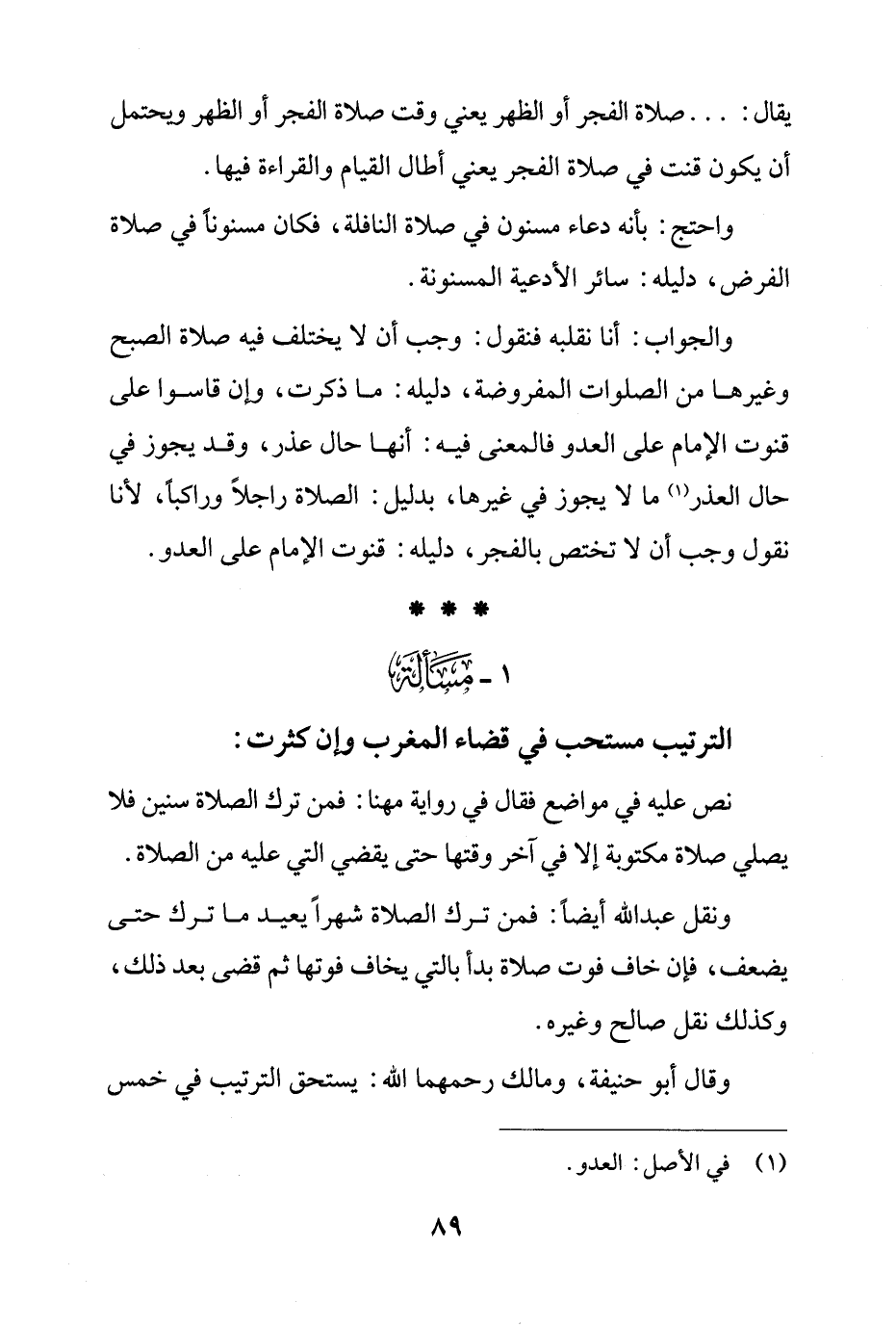 1 - مَسألَة: الترتيب مستحب في قضاء المغرب وإن كثرت: